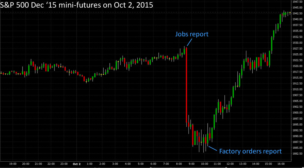 The report was immediately considered disappointing with S&P 500 futures declining from 1928 to 1895.75 in the 10 minutes following its release. Futures were as low as 1883.25 after the opening bell. The market was hit by additional data at 10:30 AM with the Census Bureau’s Full Report on Manufacturers’ Shipments, Inventories, and Orders (colloquially known as “month-over-month Factory Orders”) for August 2015. The headline number was -1.7% (consensus estimate by analysts was -0.9%).